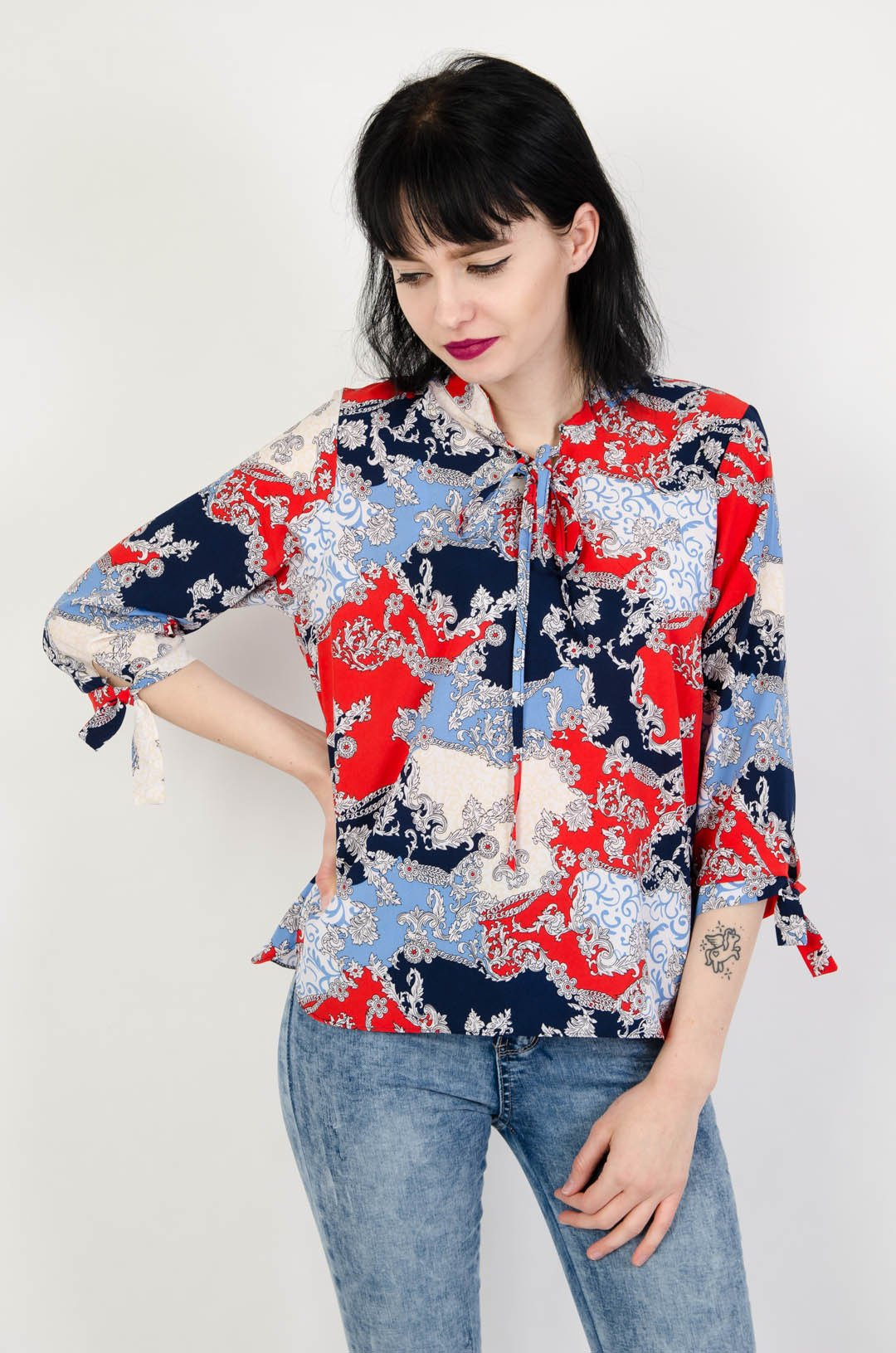 Wzorzysta bluzka z wiązaniem przy dekolcie