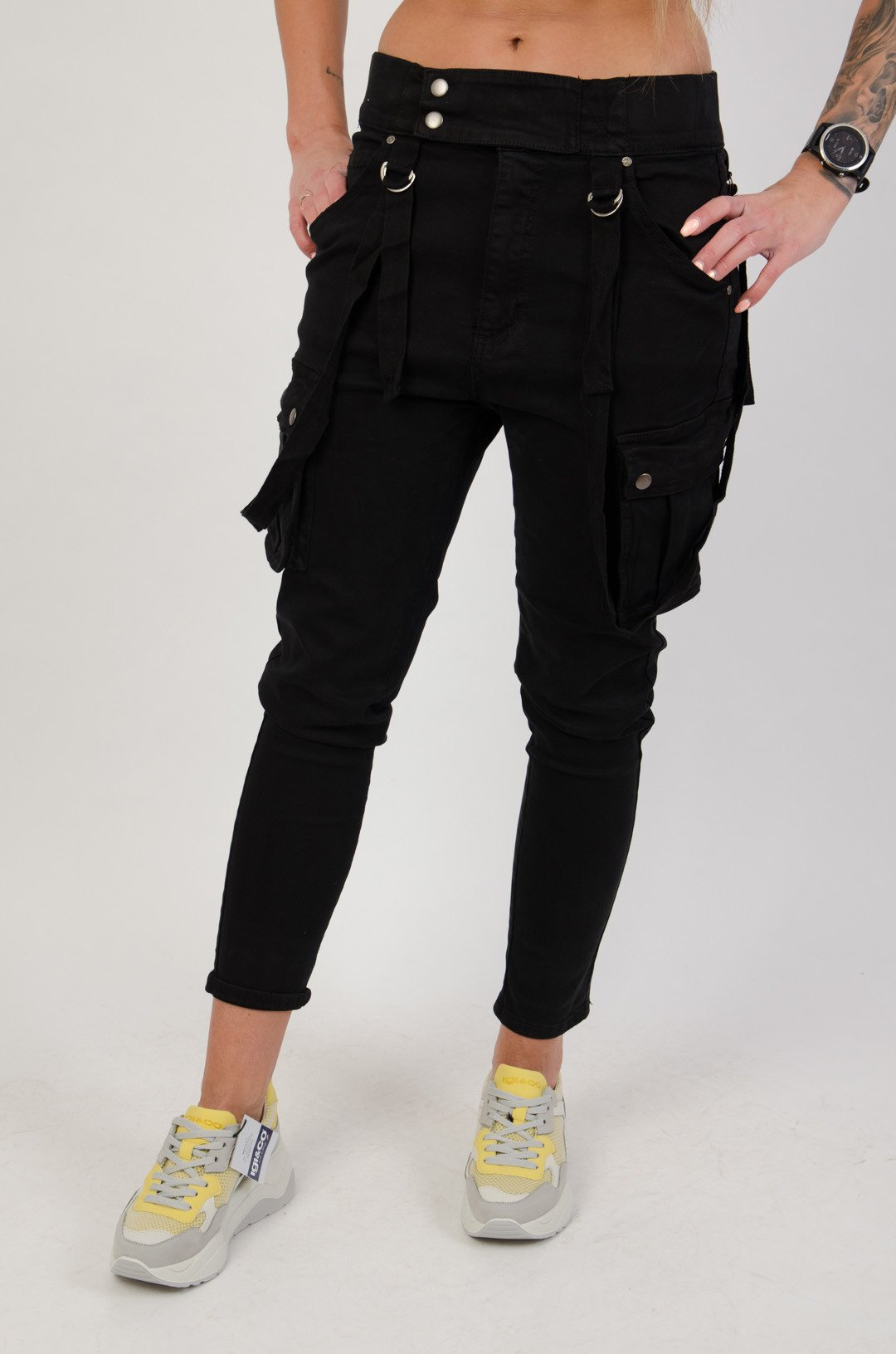 Czarne spodnie joggery z szelkami
