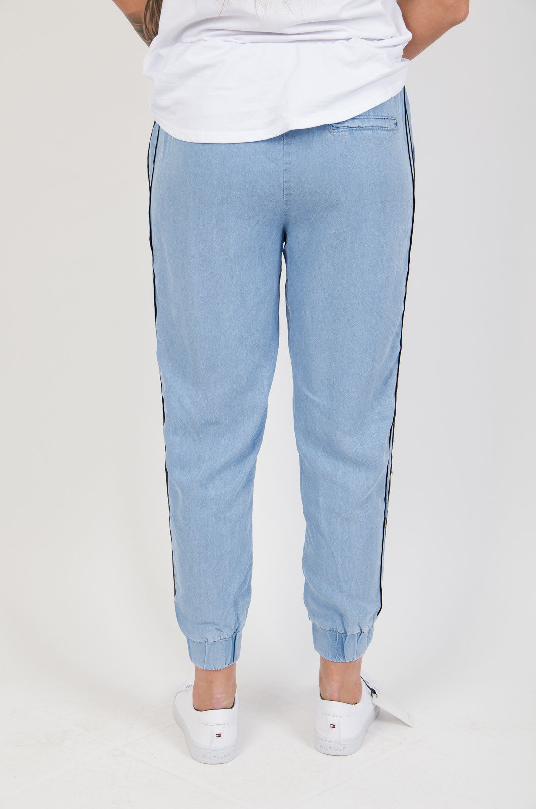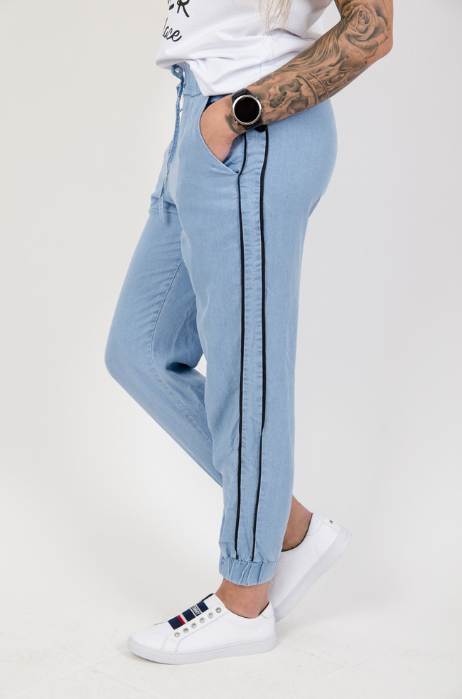 Niebieskie spodnie materiałowe z lampasami - dekatyzowane .