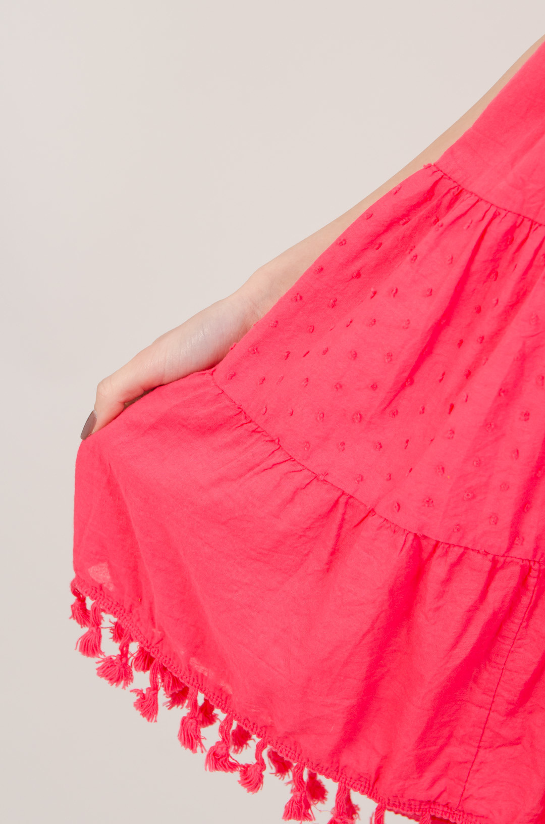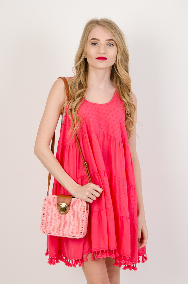 Ciemno różowa luźna tunika/sukienka na ramiączka wykończona frędzlami
