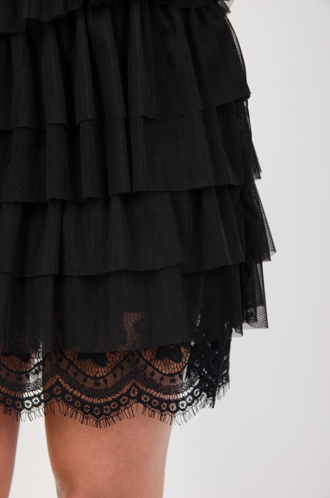 Różowo czarna sukienka z tiulowym dołem oraz koronką