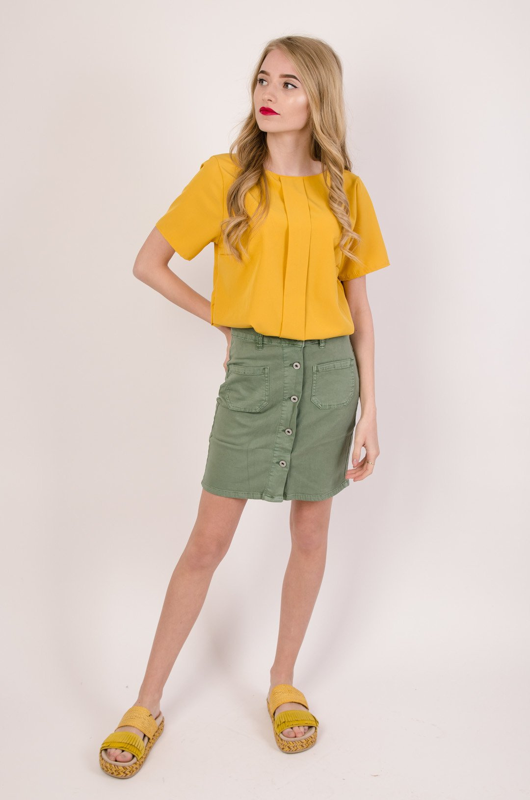 Zielona spódnica z guzikami