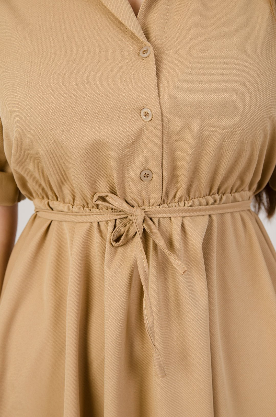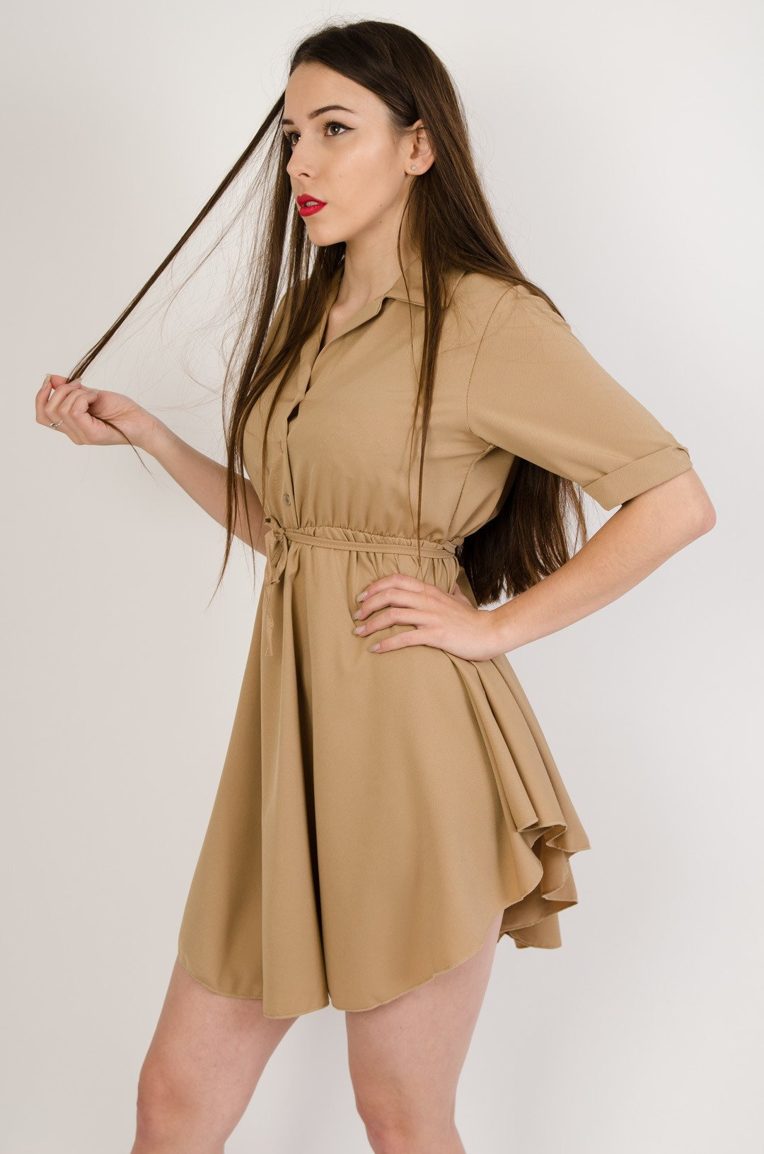 Brązowa zwiewna sukienka szmizjerka z gumką w pasie