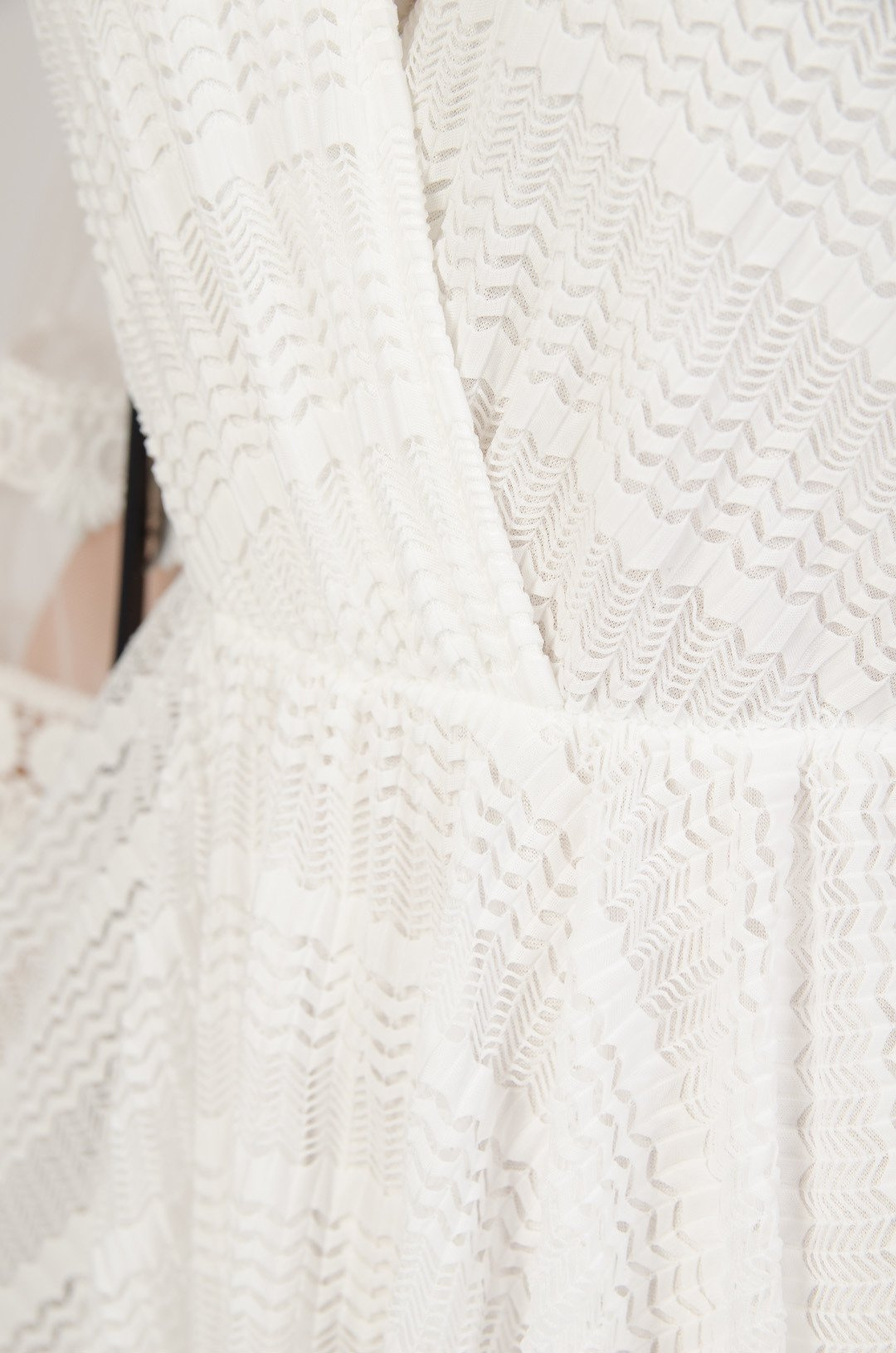 Biała ażurowa sukienka z asymetrycznym dołem oraz dekoltem w serek