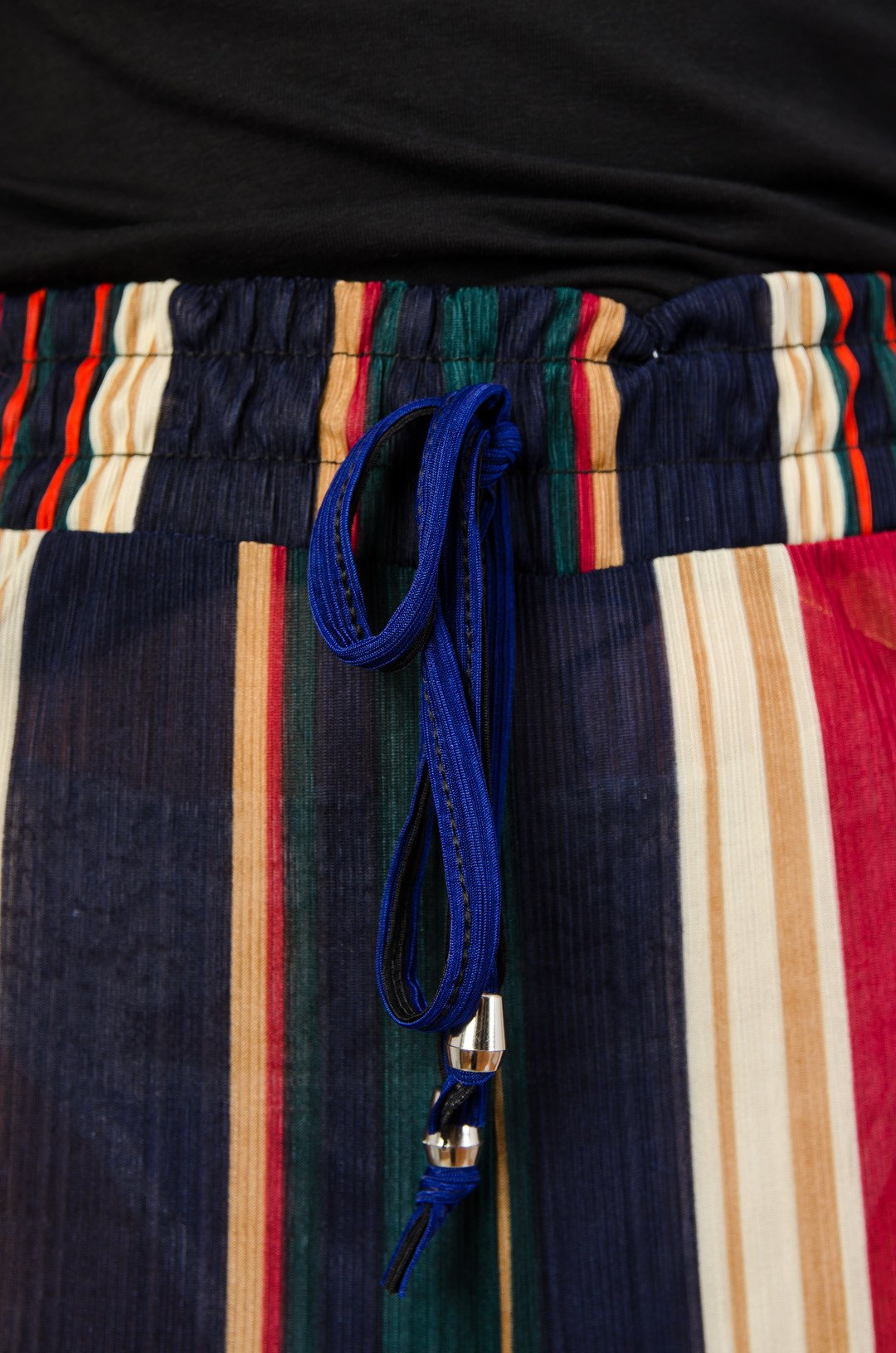 Granatowo-czerwone spodnie w paski z szeroką nogawką