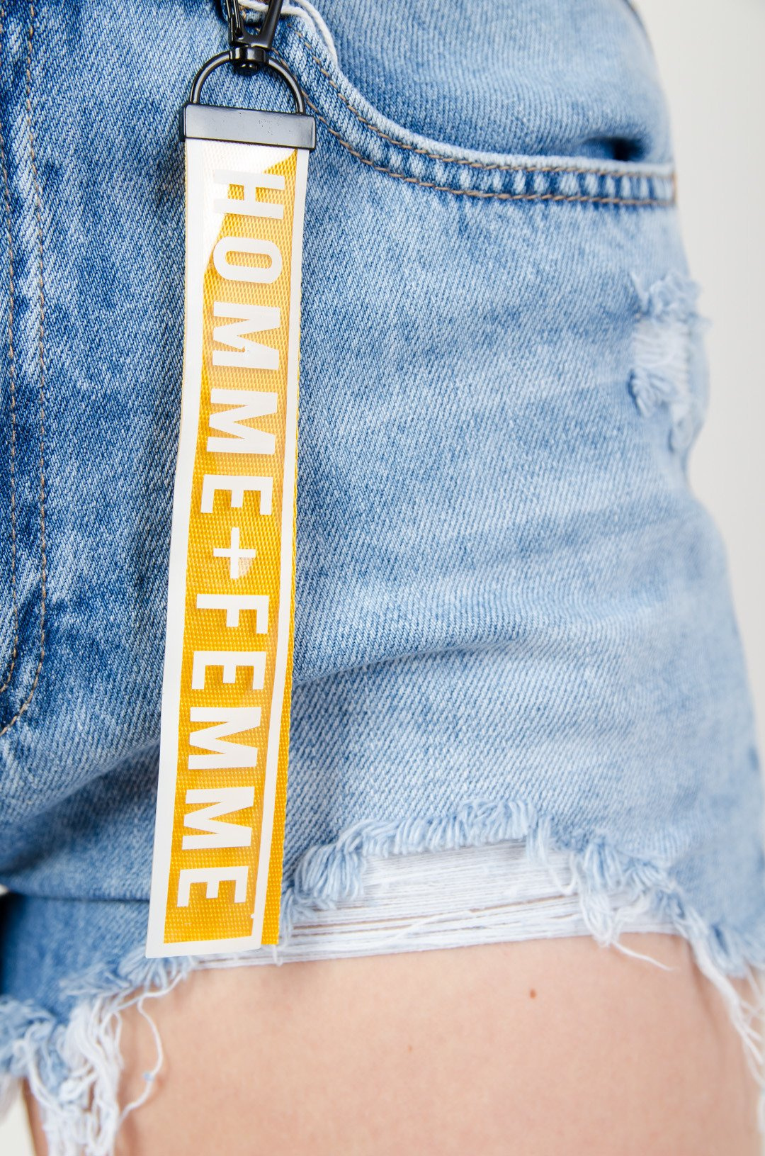 Jeansowe szorty z wysokom stenem i żółtą zawieszką