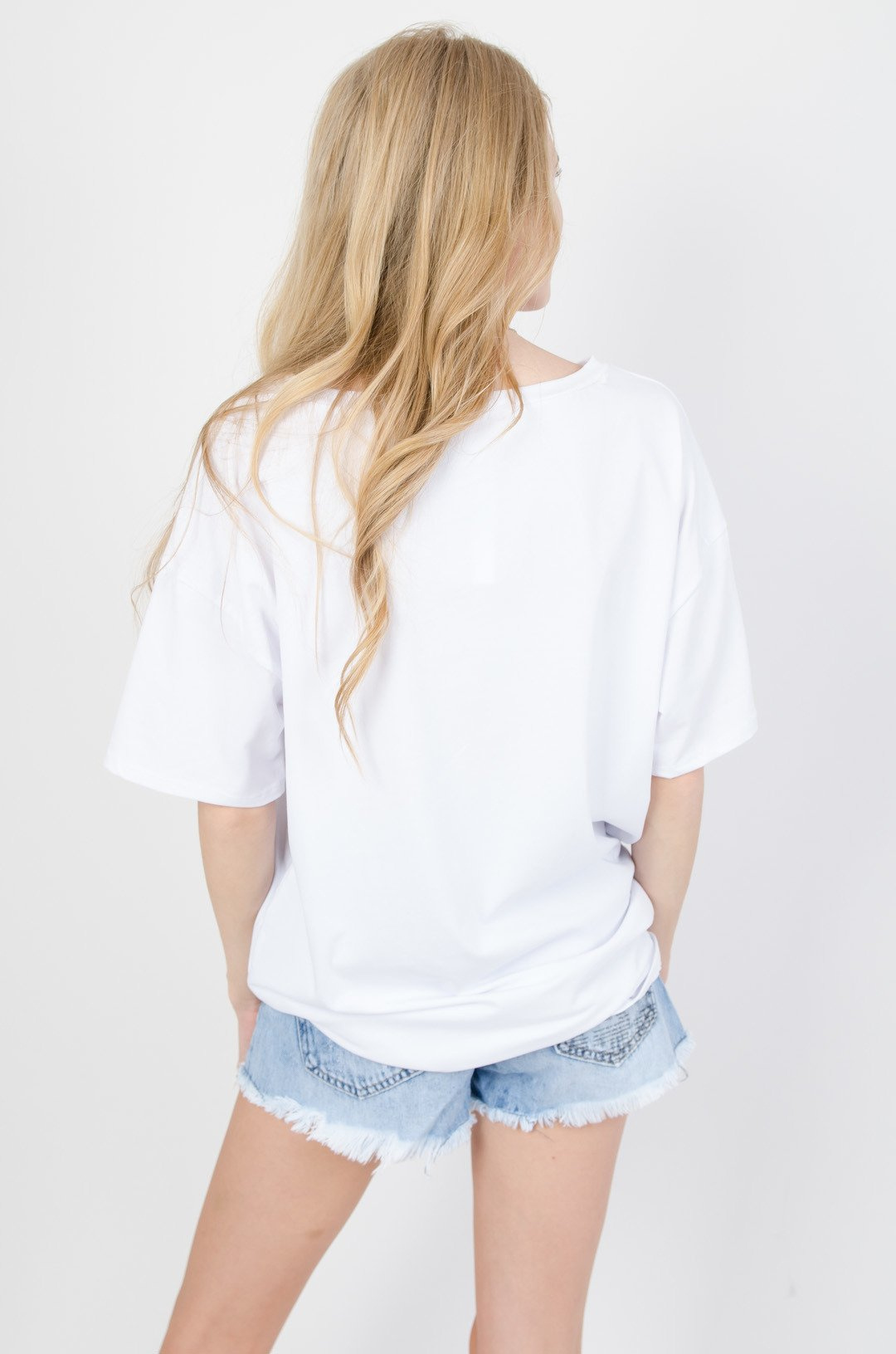 Biała asymetryczna bluzka z naszywką