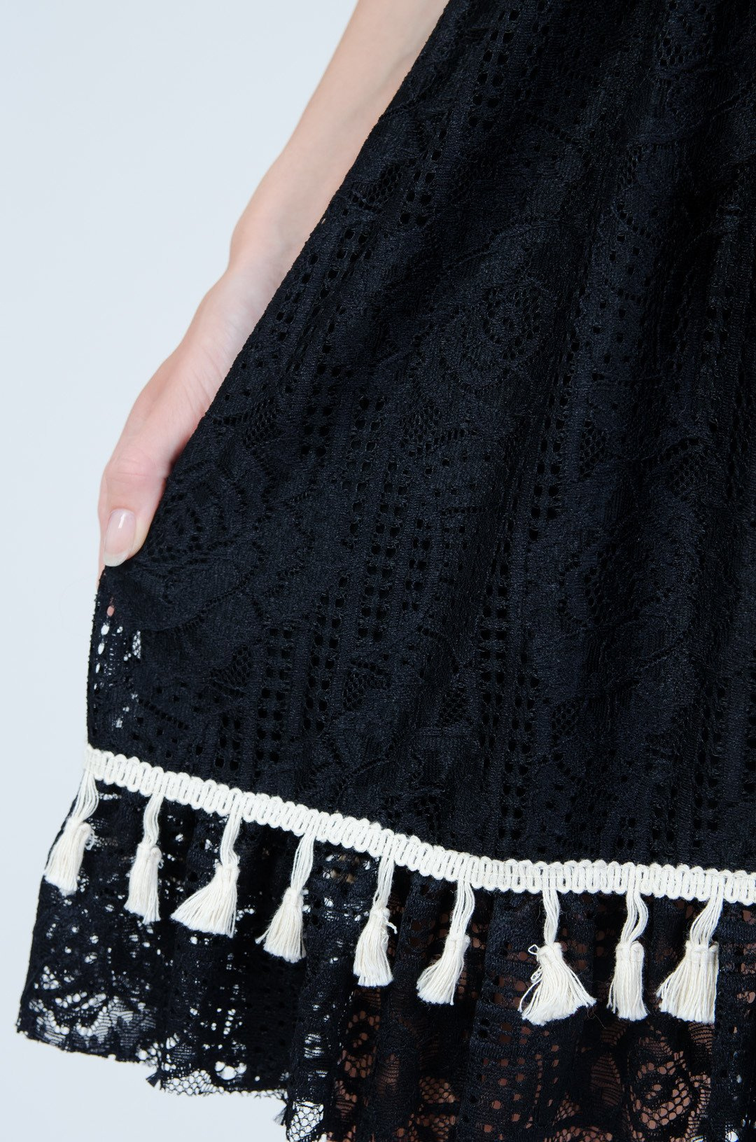 Czarna krótka koronkowa sukienka z gumką w pasie