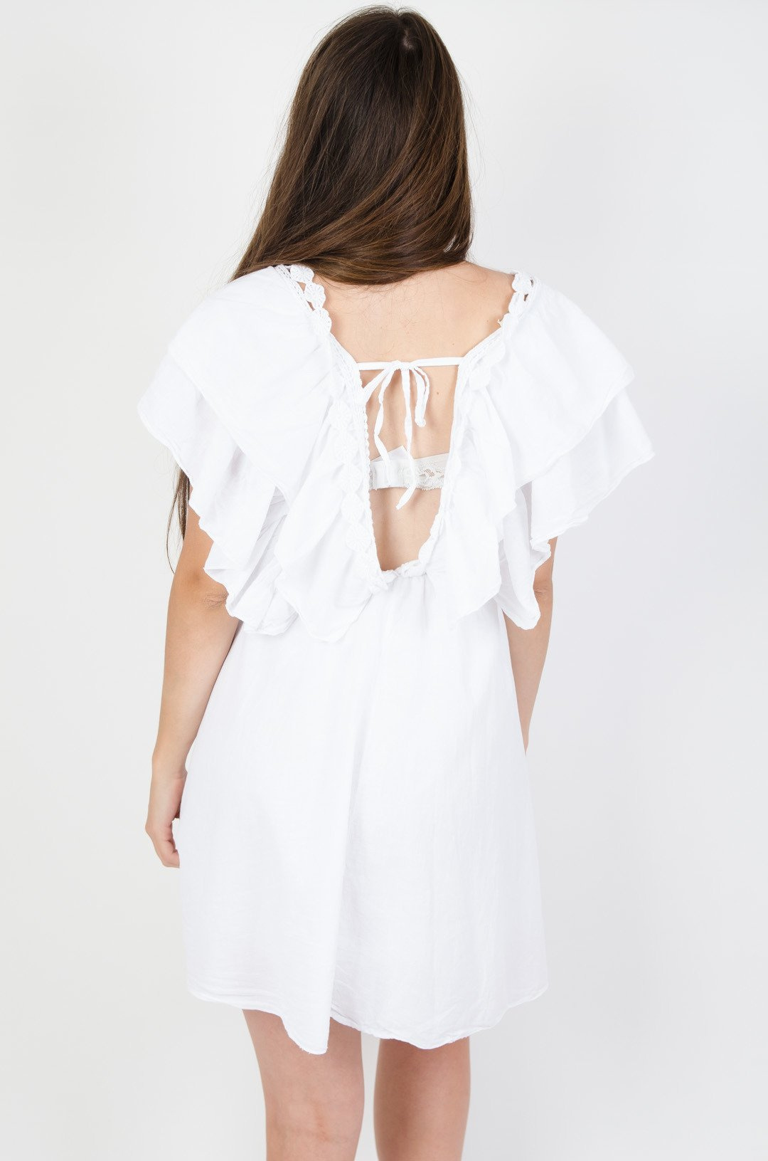 Biała sukienka z dekoltem w serek i wycięciem na plecach