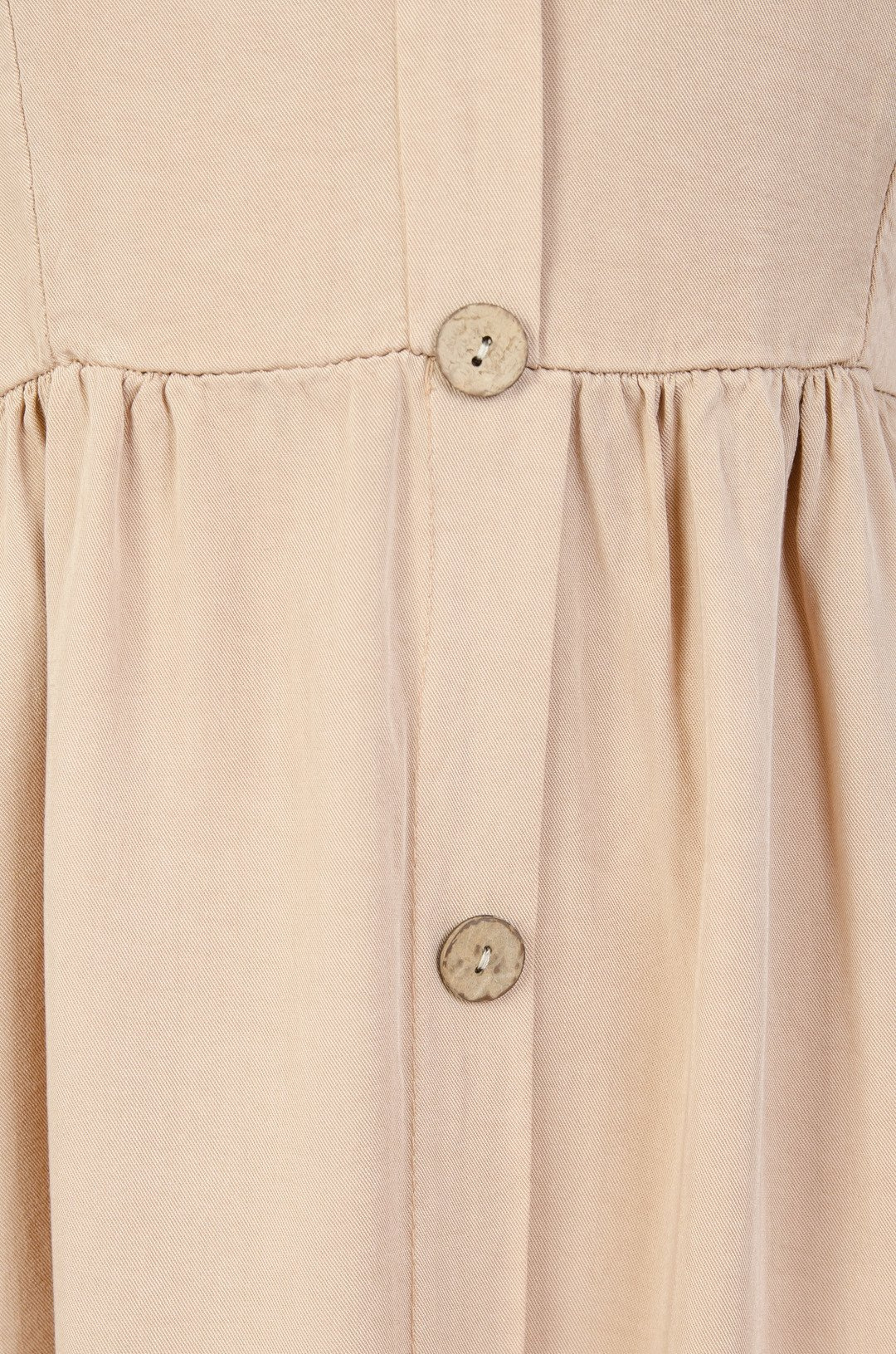 Brązowa sukienka na cienkich ramiączkach z rzędem guzików
