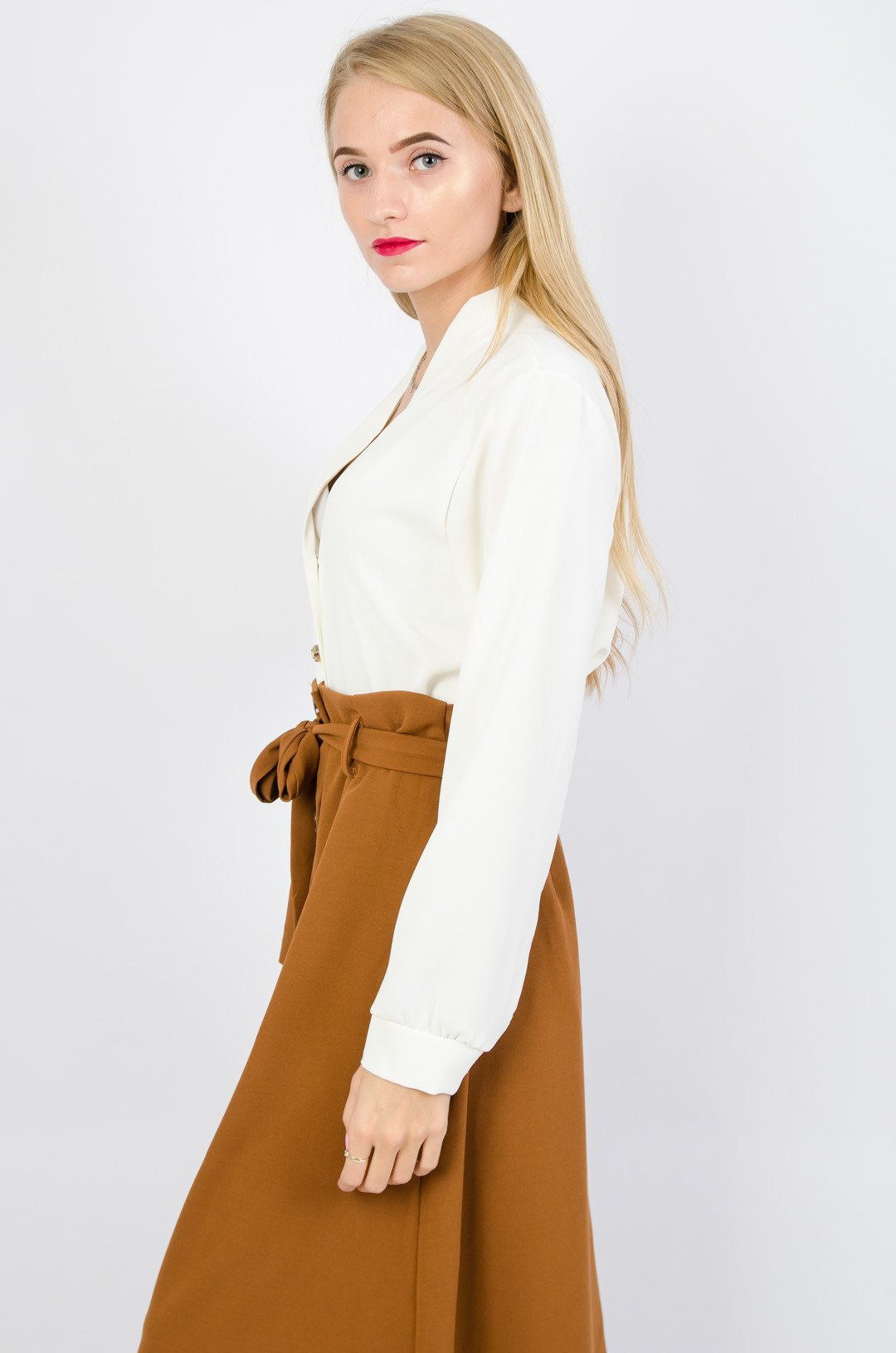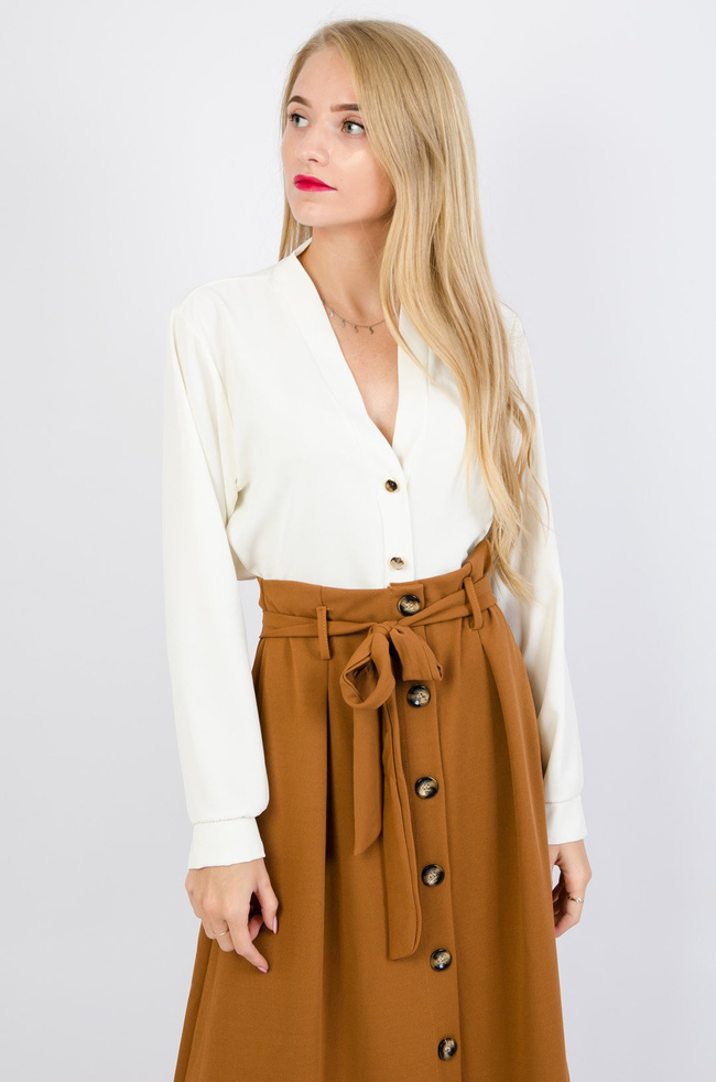 Kremowa bluzka koszulowa ze złotymi guzikami