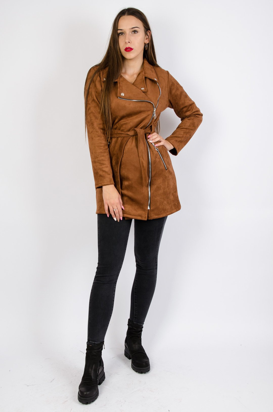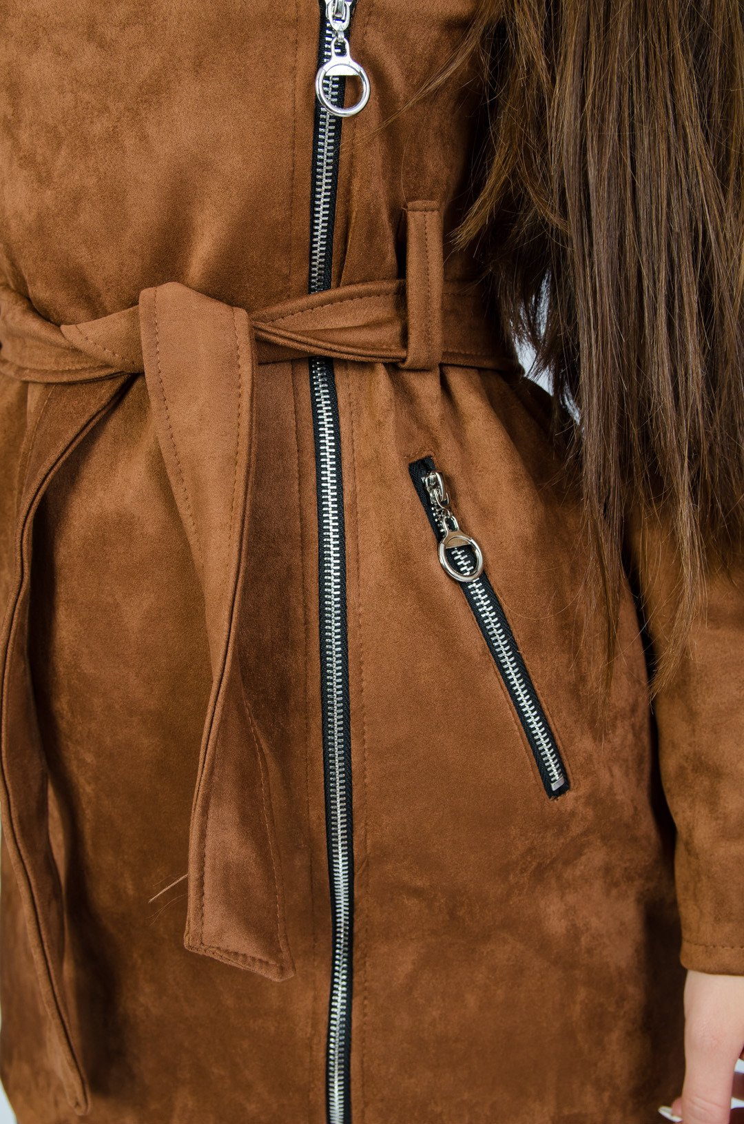 Brązowy płaszcz z imitacji zamszu M-2XL