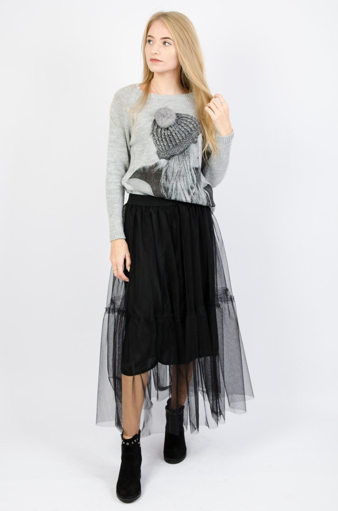 Czarna tiulowa spódnica maxi z halką