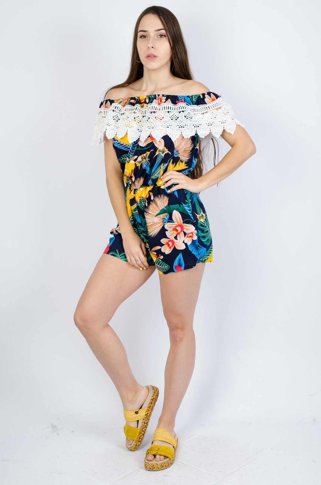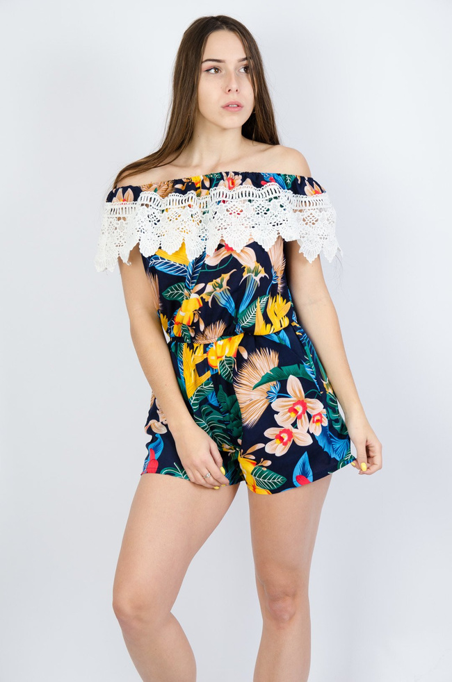 Kombinezon z koronką w dekolcie w kolorze granatowym- guma w pasie