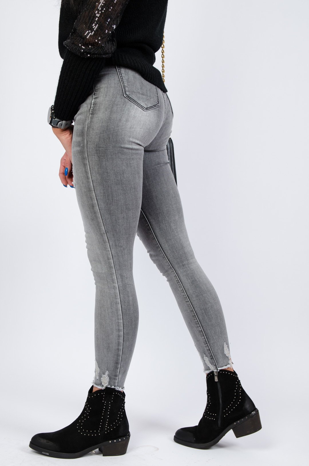 JASNO-SZARE SPODNIE JEANSOWE Z PRZETARCIAMI