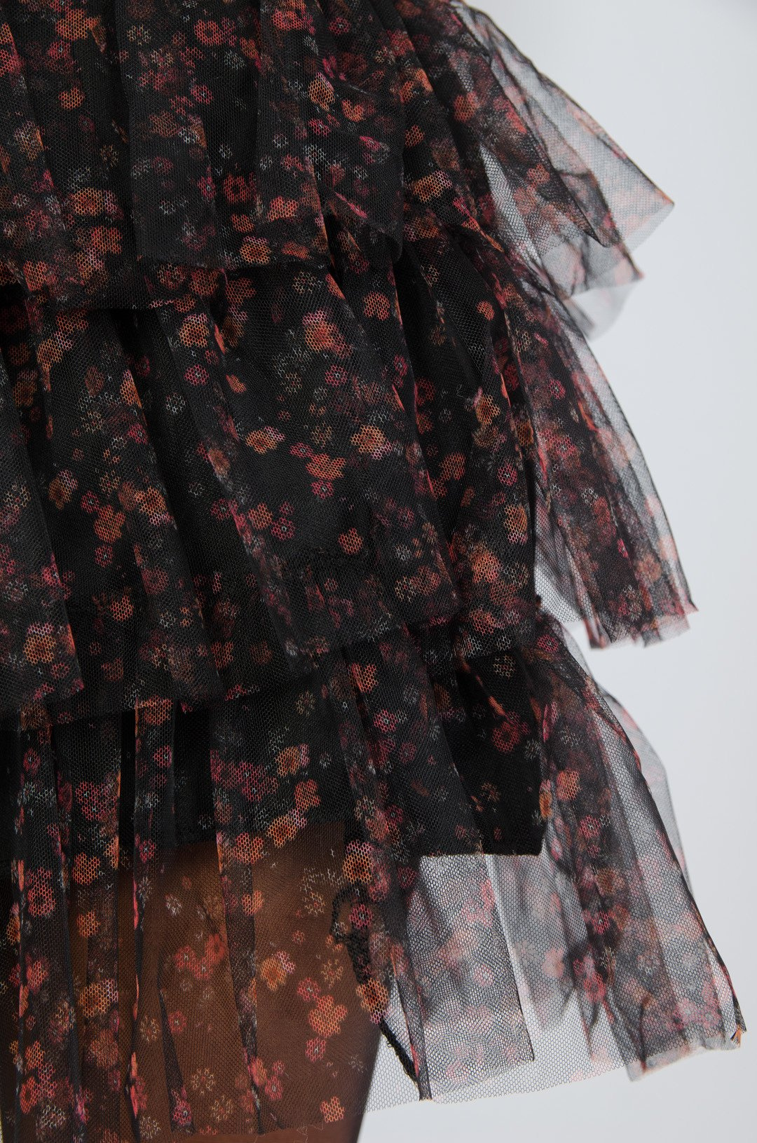 Czarna tiulowa spódnica mini w drobne kwiatki.