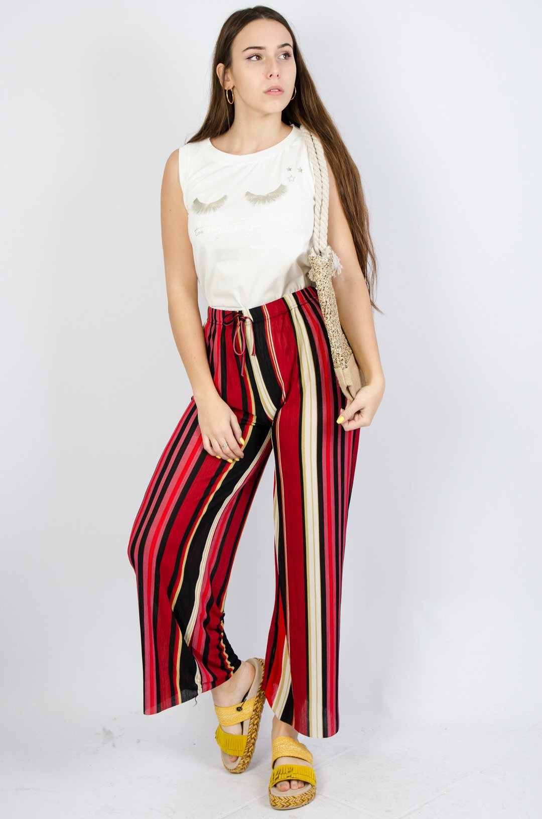 Kolorowe spodnie w paski z rozszerzanymi nogawkami