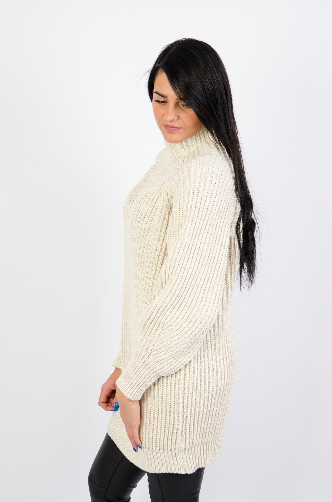 BEŻOWY DŁUGI SWETER Z PÓŁGOLFEM