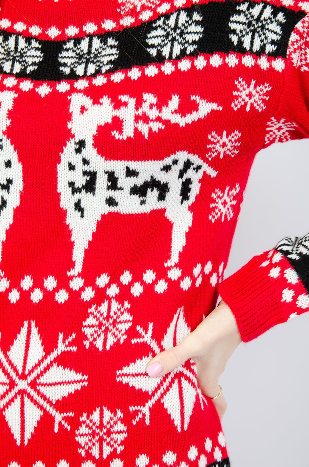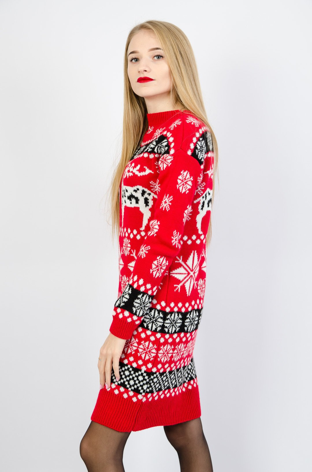 CZERWONA SWETERKOWA SUKIENKA Z MOTYWEM ŚWIĄTECZNYM