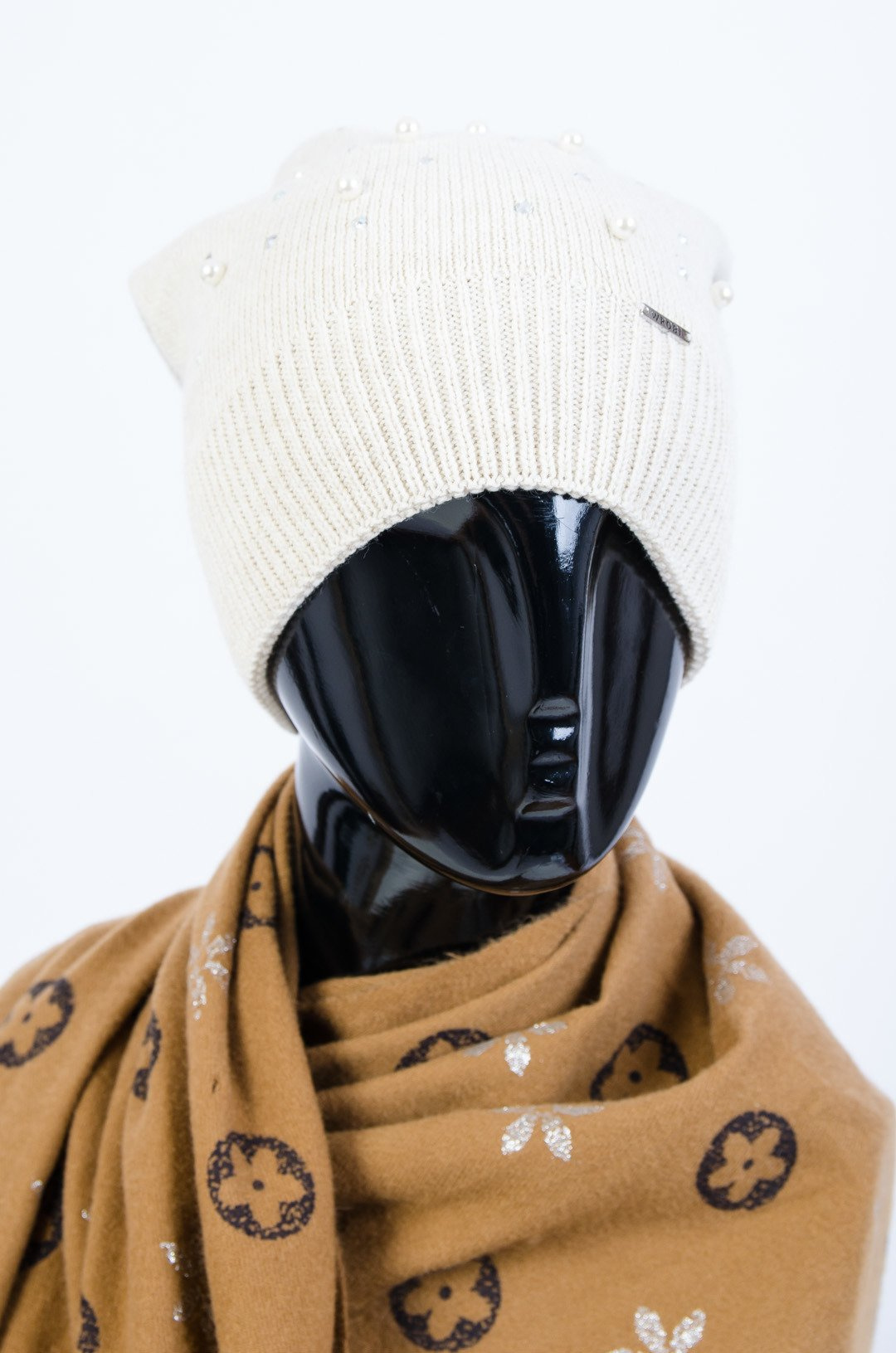 CZAPKA SMERFETKA Z KORALIKAMI W KOLORZE KREMOWYM