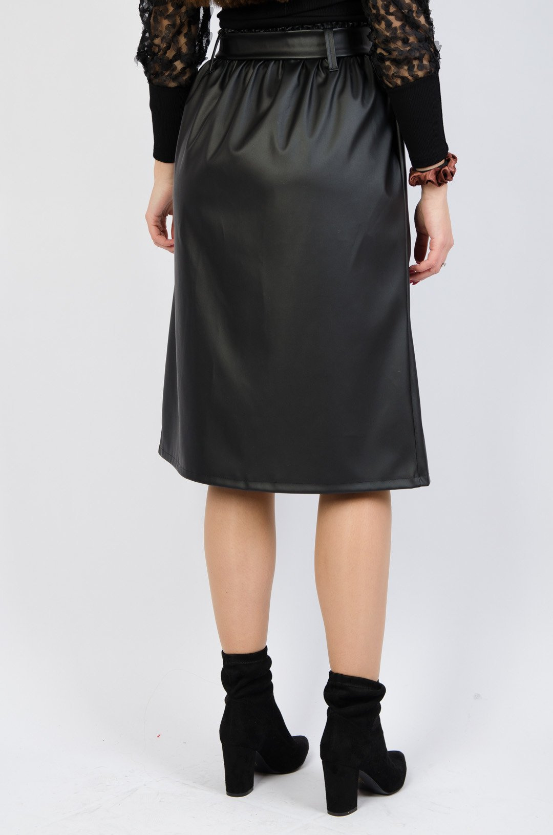 WOSKOWANA SPÓDNICA MIDI W KOLORZE CZARNYM