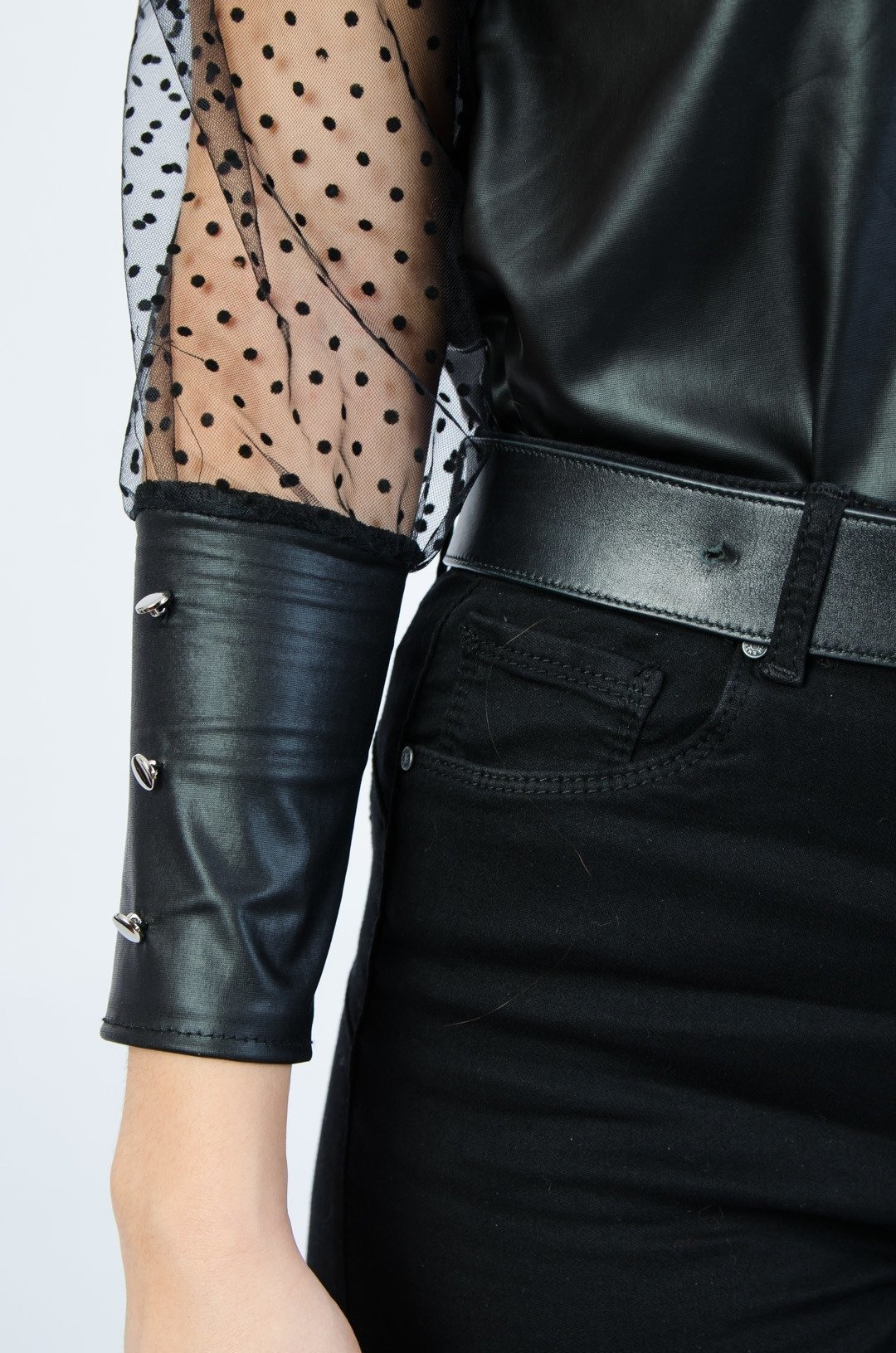 CZARNA BLUZKA Z IMITACJI SKÓRY Z SIATKĄ