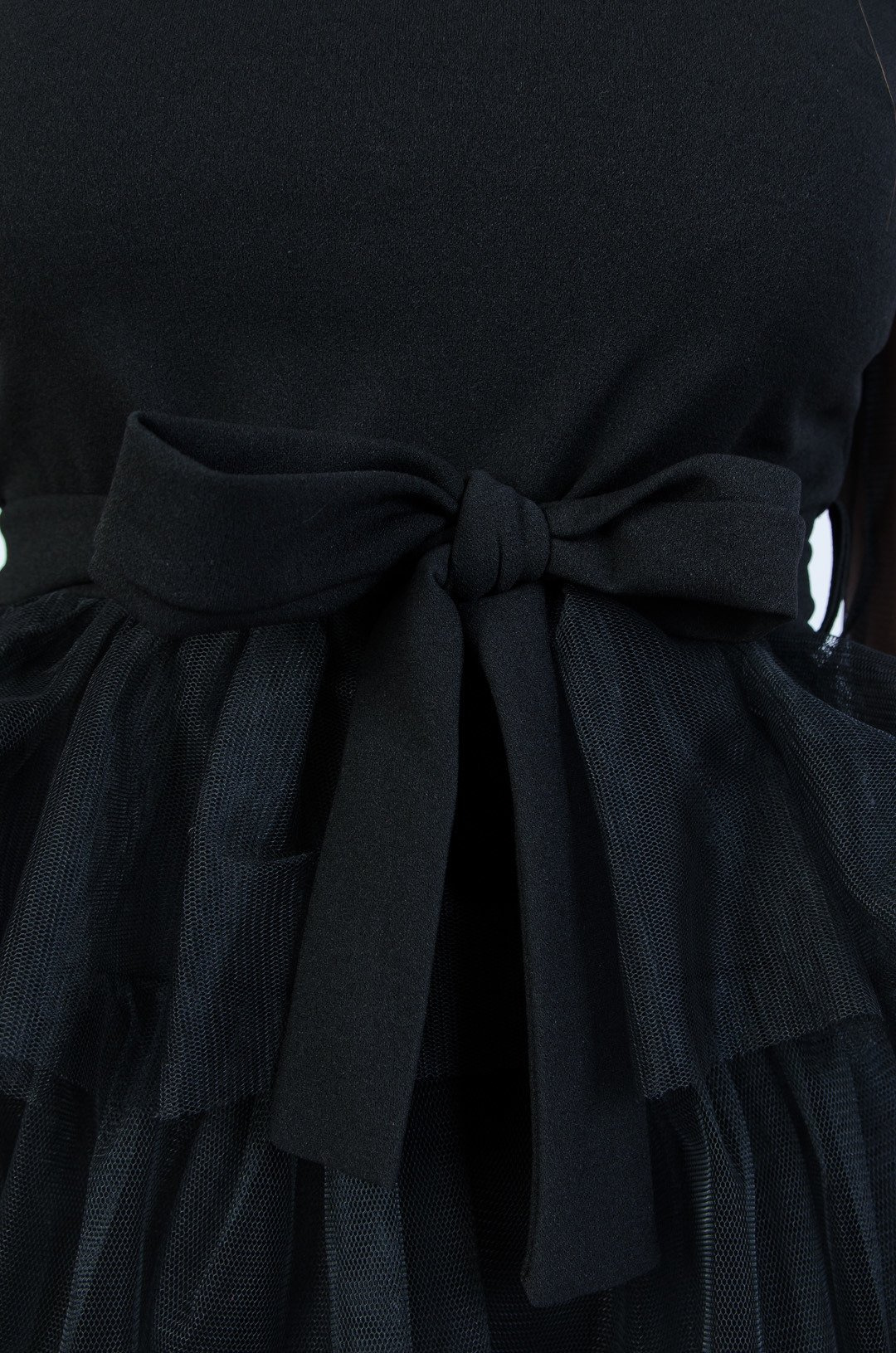 Czarna sukienka z tiulowym dołem i bufiastymi rękawami