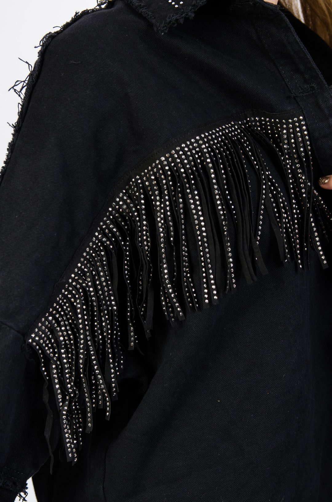 CZARNA KOSZULA JEANSOWA Z OZDOBNYMI FRĘDZLAMI