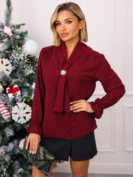 BLUZKA Z WIĄZANYM I GŁĘBOKIM DEKOLTEM- BORDOWA