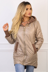 KURTKA ASYMETRYCZKA Z ZAWIESZKA PRZY KIESZENI I TROCZKAMI- CIEMNO BEŻOWA