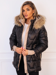 KURTKA Z FUTERKIEM NA KOŁNIERZU- CZARNA