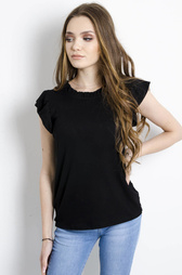 BLUZKA PRĄŻKOWANA Z FALBANKĄ CZARNA