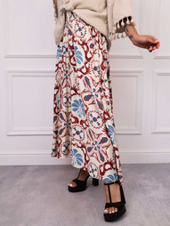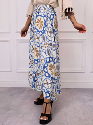 KOMPLET WZORZYSTY TOP+ SPÓDNICA Z ROZCIĘCIEM- NIEBIESKI