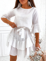 SPÓDNICA Z FALBANAMI WIĄZANA W PASIE- BIAŁA