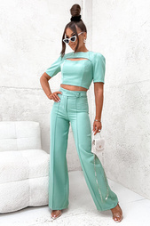KOMPLET KRÓTKA BLUZKA Z WYCIĘCIEM+ SZEROKIE SPODNIE- ZIELONY