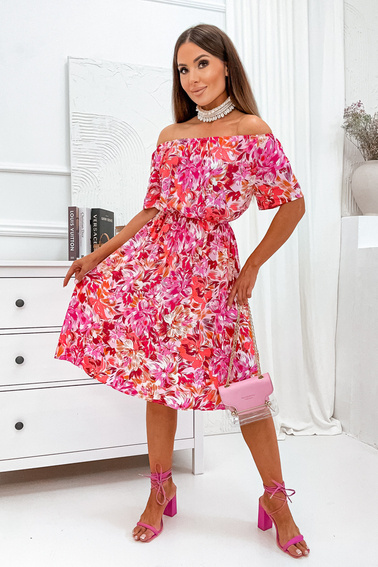 KWIECISTA SUKIENKA MAXI Z GUMĄ W PASIE- RÓŻOWA