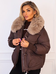 KURTKA Z FUTERKIEM NA KOŁNIERZU- CZEKOLADOWA