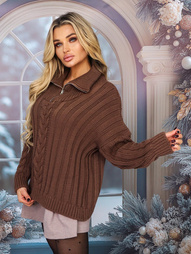 SWETER Z DEKOLTEM W SZPIC- BRĄZOWY